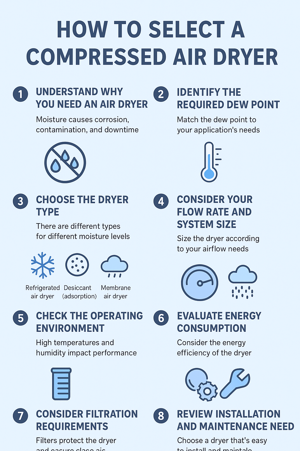 Choosing the right compressed air dryer is one of the most important decisions you can make for ensuring clean, dry, and reliable compressed air. Whether