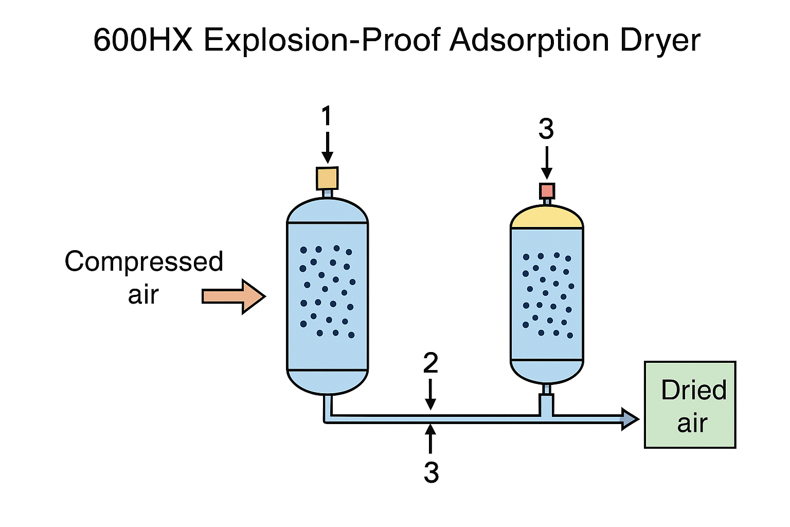 The 600HX Explosion-Proof Adsorption Dryer is designed for high-risk industrial environments where flammable gases or explosive dust may be present. While the technical specifications detail performance, capacity, and conditions, many users are most concerned with safety standards, selection criteria, installation guidance, and long-term reliability.