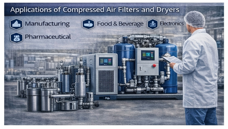 Compressed air filters and dryers are used in many industries because compressed air is widely applied in production, automation, packaging, control systems, and processing equipment.