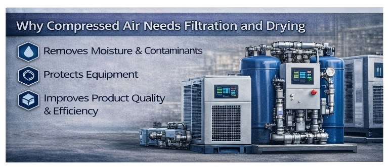 In modern industrial production, compressed air is often called the fourth utility because it powers so many essential processes. However, compressed air is only useful when its quality is properly controlled. Without the right treatment, compressed air can contain moisture, oil aerosols, dust, rust particles, and other contaminants that affect equipment performance and product quality. This is why compressed air filters and dryers are critical components in a reliable compressed air system.